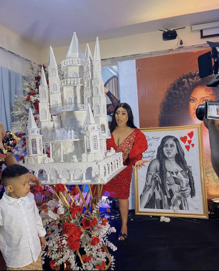 Nollywood actress Nkechi Blessing was amazed by her giant cake.