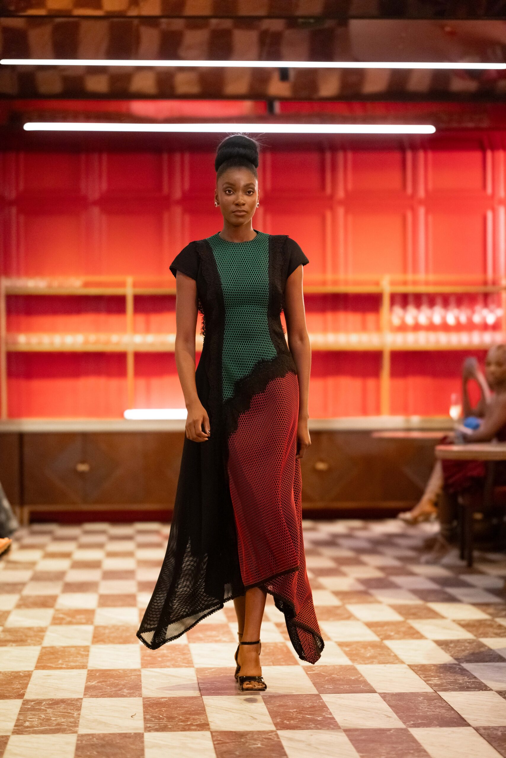 We started with research—images of walls, urban textures, and expressive brushwork that reminded us of Lagos itself: vibrant, layered, imperfectly beautiful. We collaborated with textile artists to reinterpret these impressions into print. The silhouettes were designed to flow, allowing color to move freely on the female form. The technical process was intense—developing prints digitally, refining proportions, and ensuring each piece still embodied our craftsmanship. Looking back, it was one of the most challenging but creatively rewarding collections we have created.