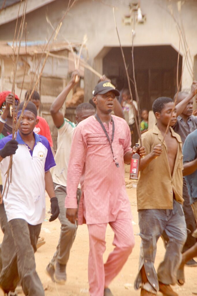 From the early hours of the day, the streets of Ikija-Ijebu came alive with energy and anticipation. Groups of celebrants moved through the town in procession, carrying symbolic branches and traditional instruments while chanting and invoking the ancestral spirit that defines the festival. The sound of drums echoed across the community, drawing families, elders, and curious visitors out to witness the spectacle.