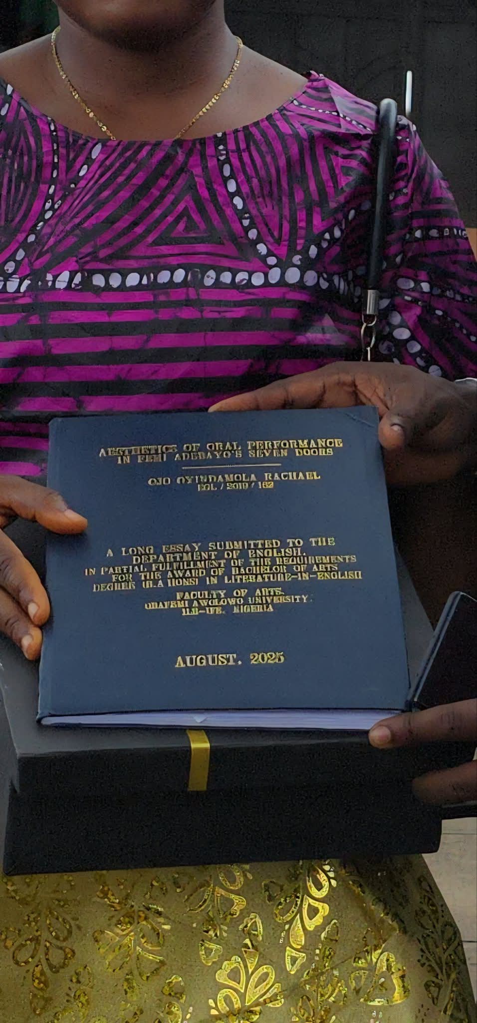 Femi Adebayo, known for blockbusters such as King of Thieves (Agesinkole) and Jagun Jagun, commended the young scholar for her passion and dedication. He noted that it was gratifying to see his work contributing to academic discourse and inspiring the next generation of filmmakers.