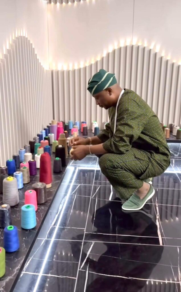 Speaking about the current scale of his work, Vodi explained that certain custom commissions now attract fees of up to $300,000 for a single outfit. According to him, these projects go far beyond ordinary tailoring. They involve rare fabrics sourced from different parts of the world, detailed hand finishing, specialized embroidery, and months of careful production. In many cases, each garment is created as a one-of-one piece designed specifically for the client.