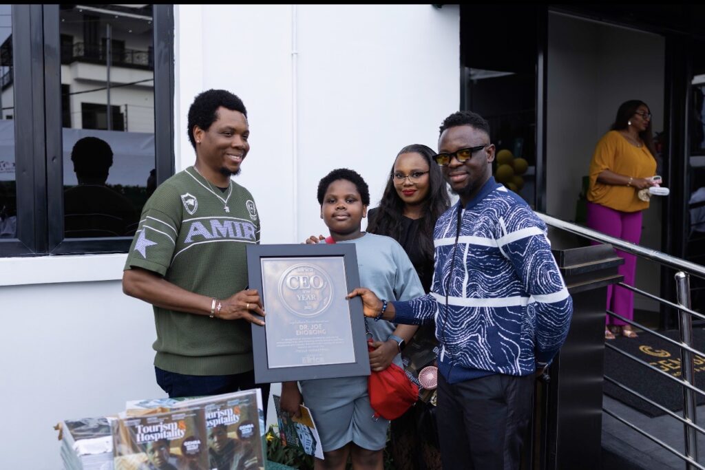 Ranks Africa CEO of the Year 2025, Dr. Joe Enobong, was formally presented with his award during the official opening of the newly completed Gemba Hotel and Resort in Calabar, Cross River State. The presentation took place last weekend as part of the grand unveiling ceremony of the hospitality facility, an event that drew notable personalities from business, government, and the entertainment industry.