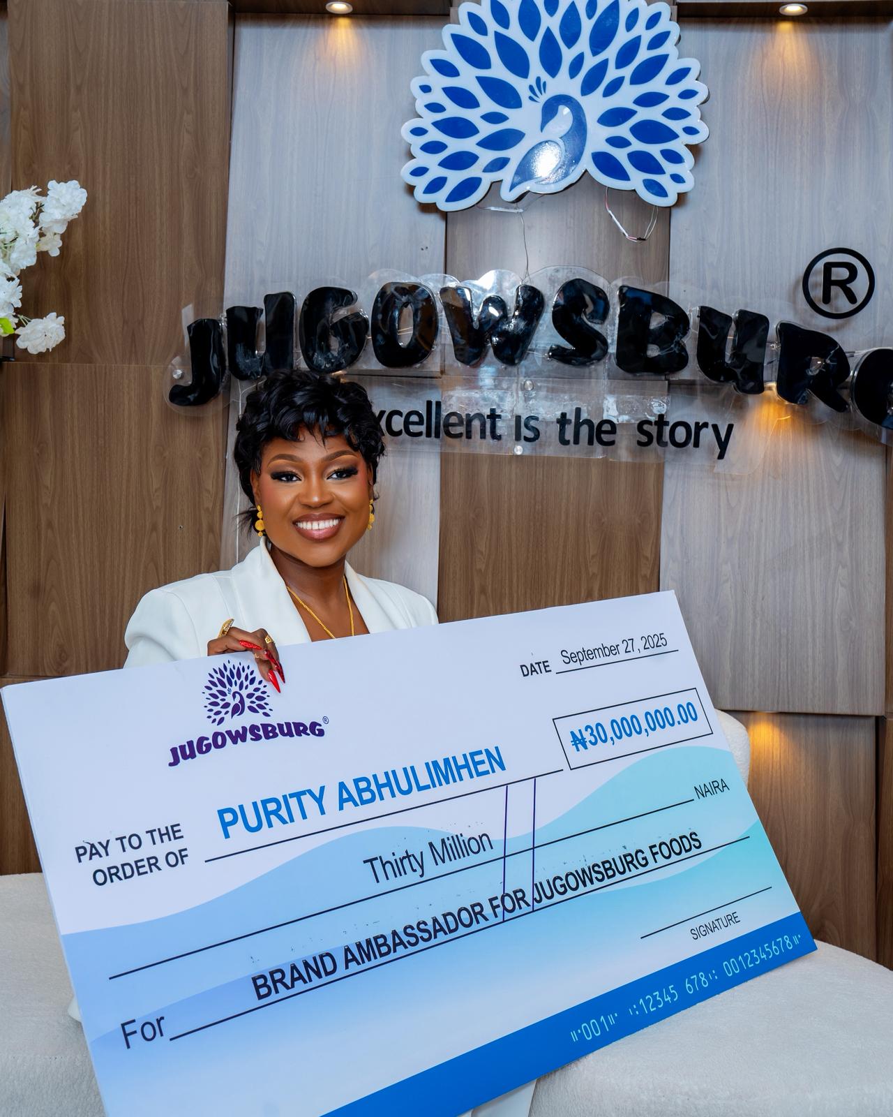 The ambassadorial deal will see Purity Abhulimhen representing Jugowsburg Food and promoting its range of products to her vast and ever-growing community of entrepreneurs for one year subject to renewal.